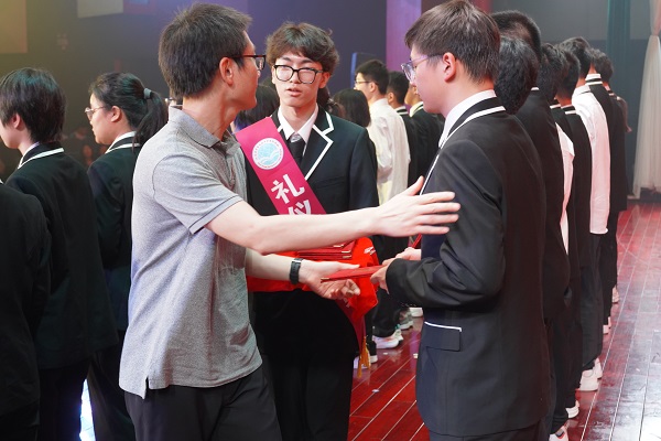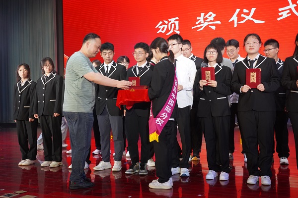 接下来便是激动人心的时刻,由何飞副校长宣读优秀毕业生名单,王俊涛校长和董文杰副校长为获奖代表颁奖,这不仅是对他们过往辛勤付出的肯定,更是对他们未来璀璨人生的期许。