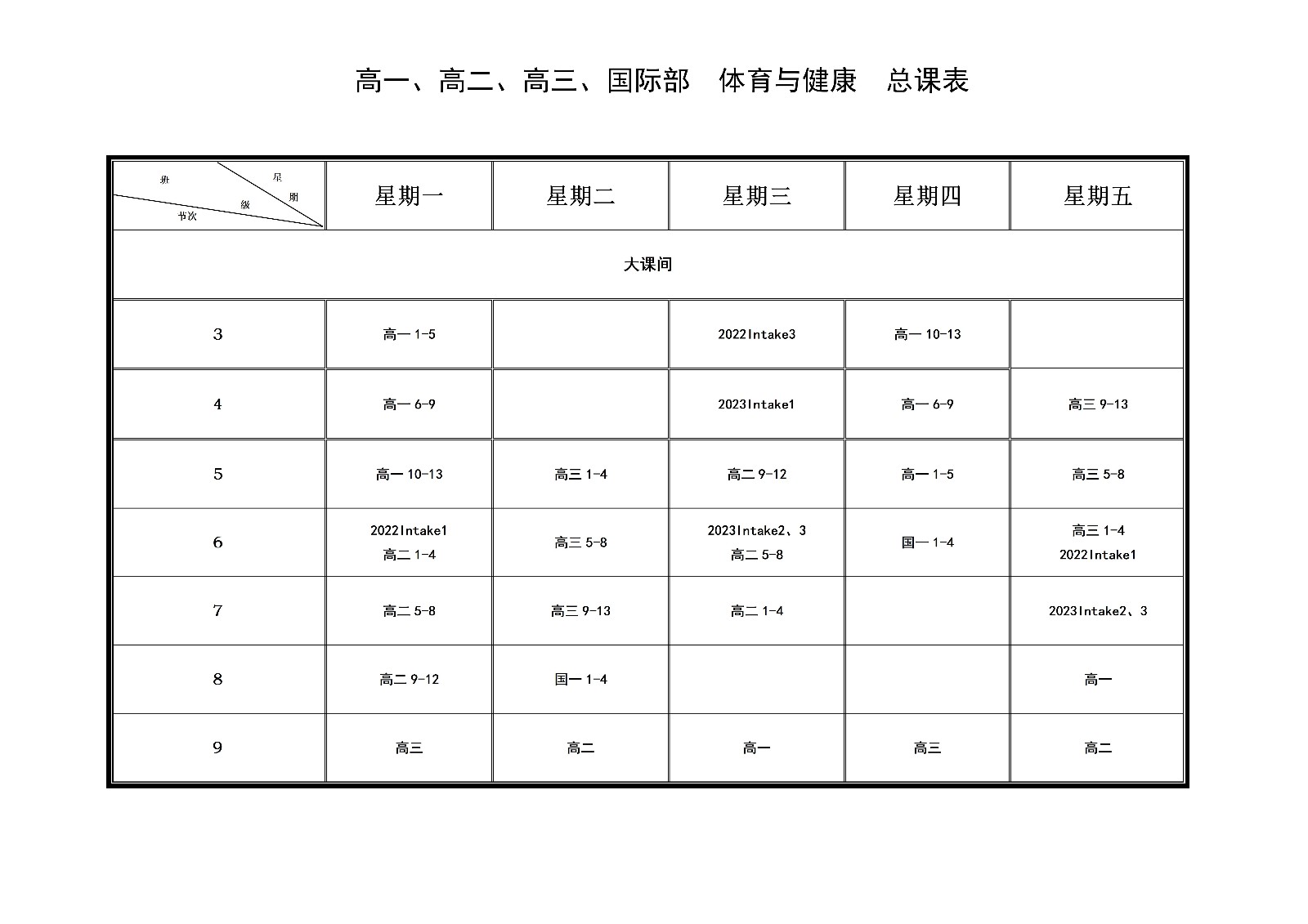 体育课表