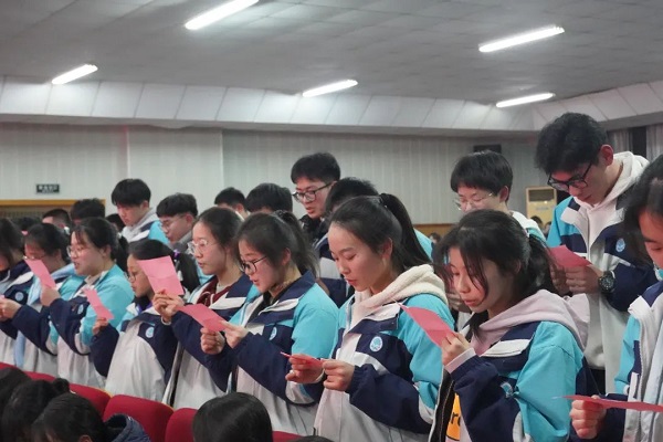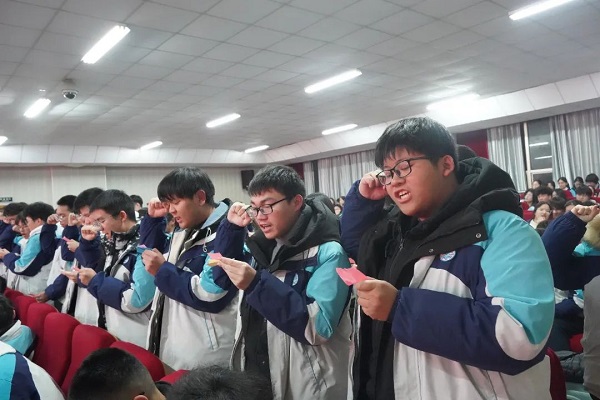“少年负壮气,奋烈自有时”。各班级依次宣誓,誓言铿锵,气势恢宏,把大会气氛推向了高潮。那声声呐喊彰显着省前中国际分校学子坚定的信心,他们不仅喊出了蓬勃的生命活力,也表达出了对大学、对远方的深情向往。