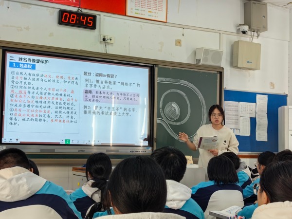 在研讨会上,江苏省前黄高级中学国际分校杨淑婧、邵莹莹,东北师范大学附属中学刘强老师先后展示了三堂精彩的专题研究课。杨淑婧老师在《积极维护人身权利》的课堂教学中,坚持以学生为主体,运用AI技术赋能课堂教学,创新必备知识的呈现与组织方式。她结合第11批43位在韩志愿军烈士遗骸回国的新闻,通过AI技术重现志愿军年轻时的模样,带领学生重温那段中国人民志愿军浴血奋战的英雄岁月,将《民法典》中关于“英雄烈士等的姓名、肖像、名誉权”的条款具象化,感动了众多师生。