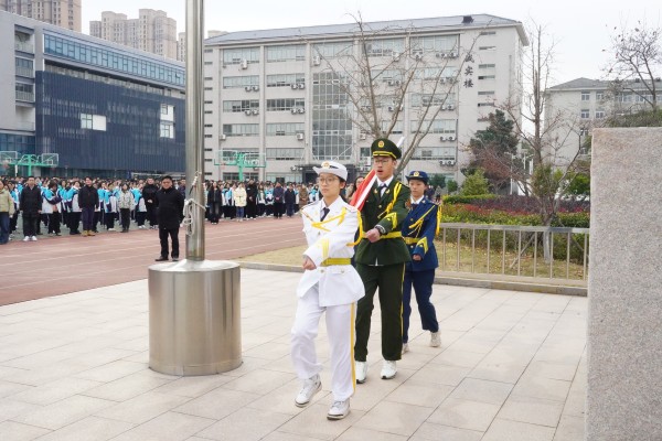 12月16日担任升旗仪式的主持人为高一(4)班朱宸溪。护旗先锋是来自高二(9)班的16位优秀学生代表,他们是:吕旻、许铂宸、金珂、胡馨予、沈俊宏、陈楚妍、余凯、梁馨月、吴嘉艺、黄静怡、沈云舒、周帅、李昕奕、陈振阳、于奥庆、邵鹏程。三位升旗手是:高二(10)班孙俊超、高二(6)班陈颀诺、高二(12)班陈雅婷。