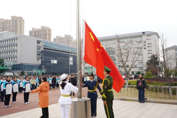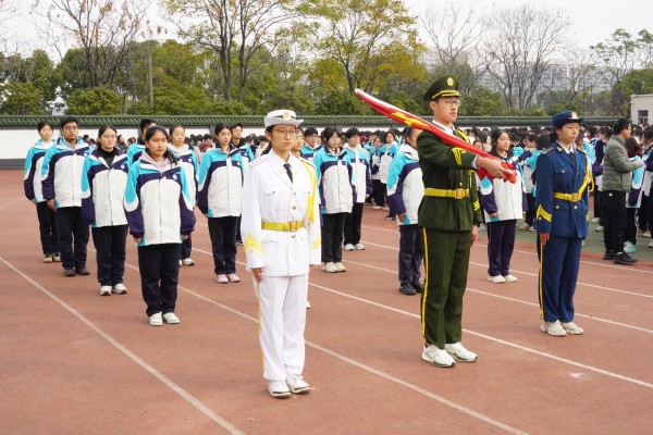 12月23日担任升旗仪式的主持人为高一(8)班朱任仪轩。护旗先锋是来自高二(11)班的16位优秀学生代表,他们是:谢瑜桐、韦煜航、张雅迪、曾宇馨、钟袁正昊、盛薇懿、孔子豪、潘奕彤、吴静姝、熊舒阳、曹韵萱、李佳函、冯雅馨、余睿熙、何牧菲、叶雨迅。三位升旗手是:高二( 6)班张熠、高二(6)班严天妤、高二(11)班周天琪。高二(11)班优秀学生周欣颖做国旗下讲话。